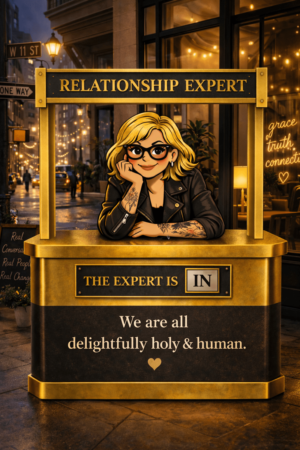 You remember Lucy’s booth in Peanuts? The little stand where you could walk up, pay your nickel, and get advice? That’s this. Except I bring 15 years of clinical expertise, thousands of hours in the room with real people in real relationships, and a genuine passion for helping people thrive in the connections they were made for.